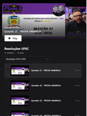 Neste curso, você terá acesso à resolução em vídeo de 10 questões da UFSC, trabalhadas em um formato que vai além da simples correção.